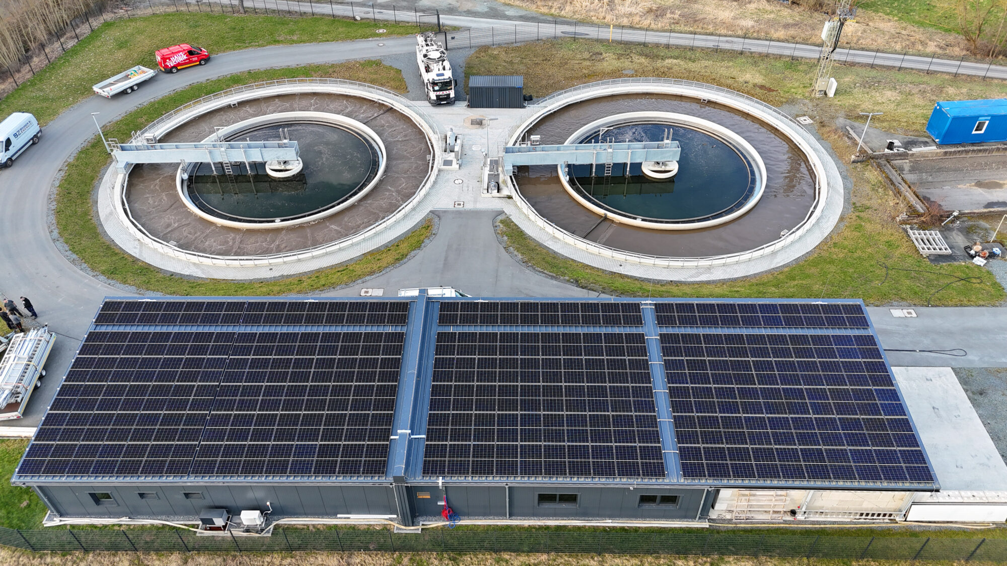 berücksichtigt wie die außerordentlich hohen Schneelasten im Fichtelgebirge. Die Kläranlage hat einen jährlichen Gesamtenergieverbrauch von 180.000 kWh. Auch mit den über 200 Modulen von jeweils 420 Watt (peak) auf der Dachfläche kann der Gesamtenergiebedarf der Kläranlage naturgegeben nicht vollständig abgedeckt werden, jedoch kann der Jahresverbrauch um 70 bis 90.000 kWh reduziert werden. Bei einem angenommenen Strompreis von 0,25 Euro pro kWh ergibt das jährliche Einsparungen von etwa 22.000 Euro. Einschließlich aller Kosten, das heißt Baukosten, Prüfungskosten einschließlich der Finanzierungskosten wird sich die Anlage damit nach weniger als 10 Jahren amortisiert haben.