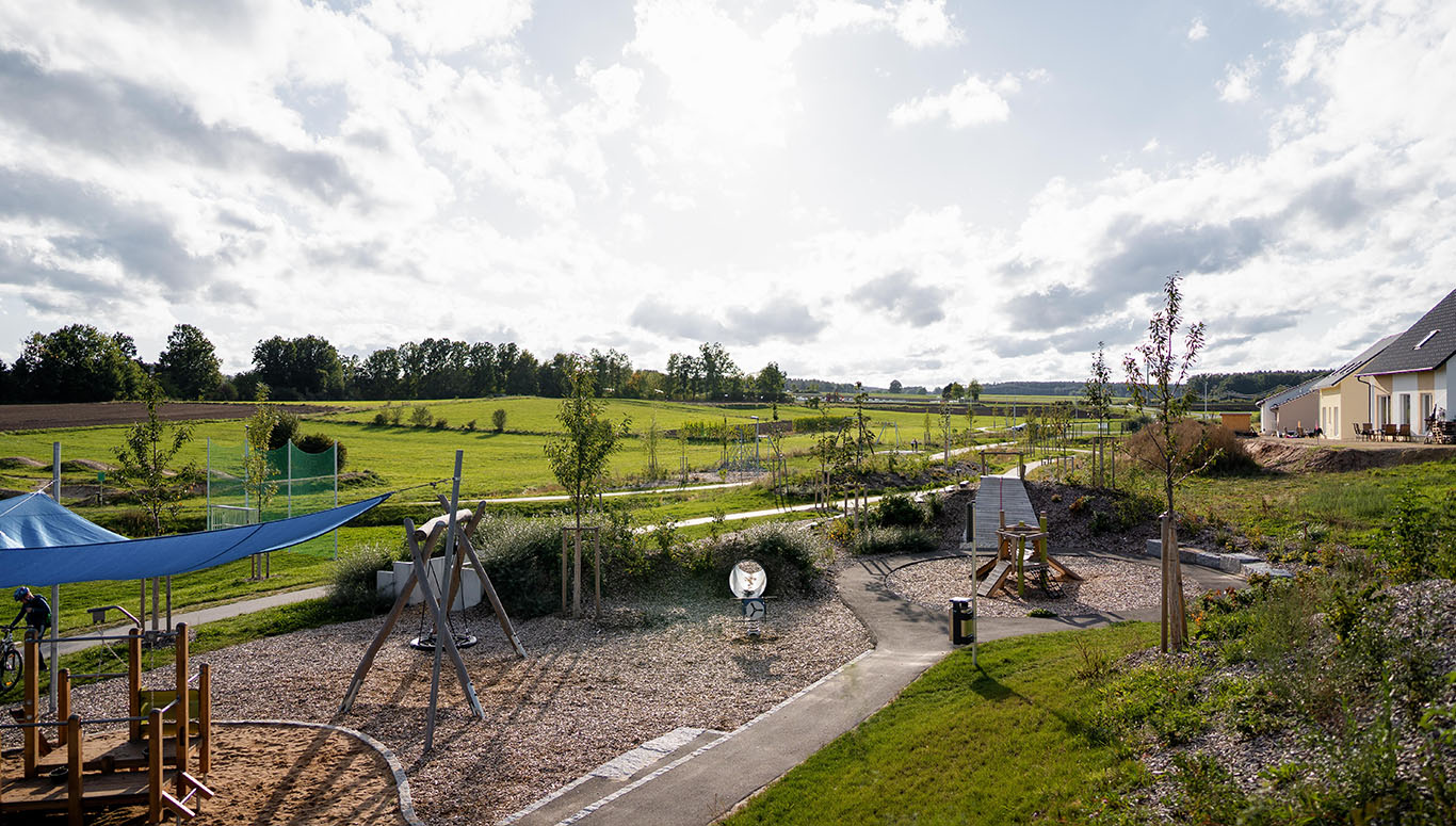 ✔ Das Baugebiet ist durch zahlreiche Wege und großzügigen Spielplatz für Fußgänger durchgängig